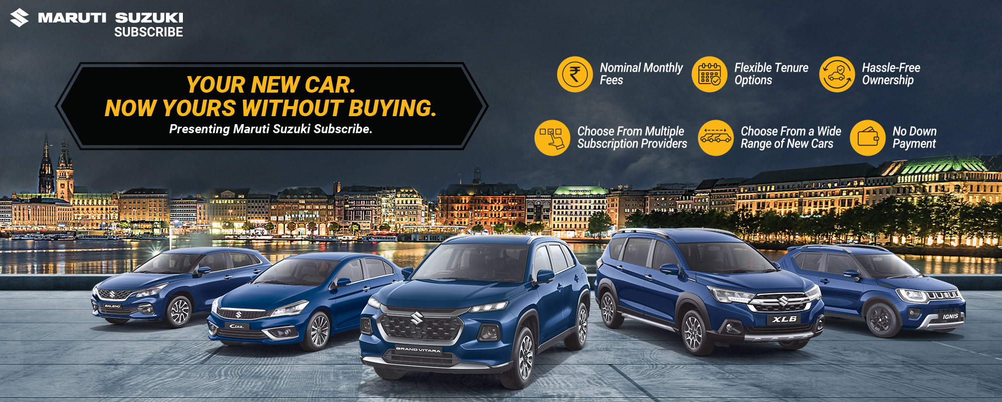 Located in Gundalpatti, Amman offers a plethora of options of Nexa cars for Maruti Suzuki Subscribe. You can choose your desired Maruti Suzuki car and drive it home at nominal monthly fees for a variety of flexible tenure periods. Whether you prefer Hatchback, Sedan, SUV or even MUV you are sure to find it at Amman, Gundalpatti with an easy Maruti Suzuki Subscribe plan.